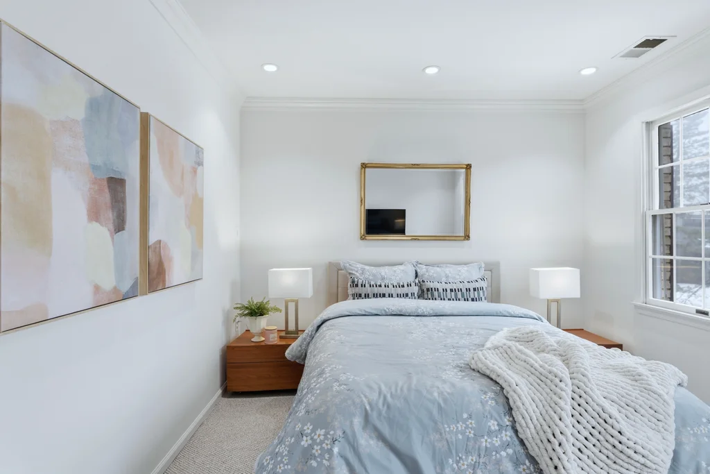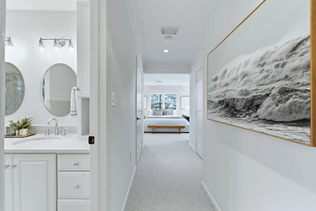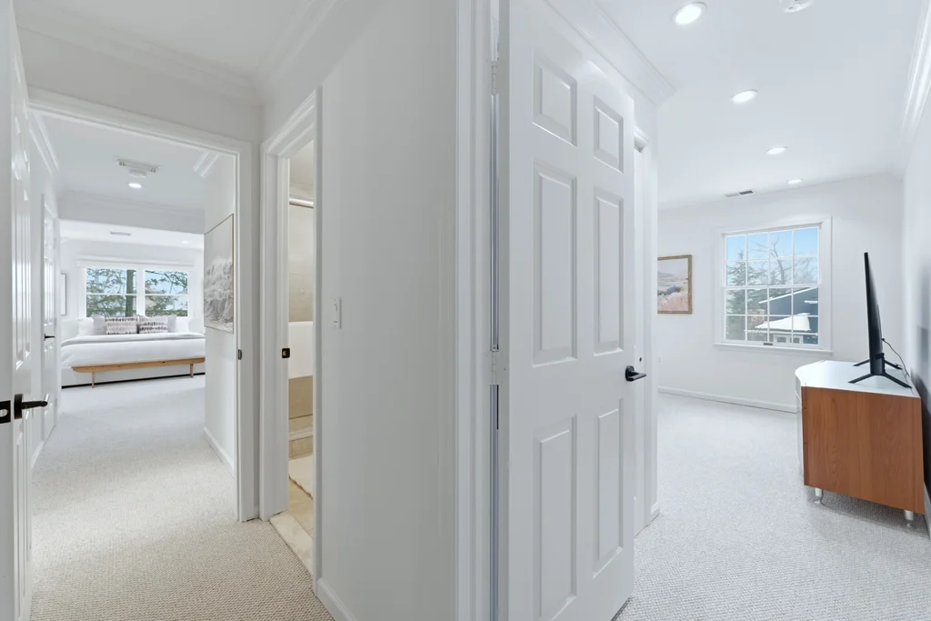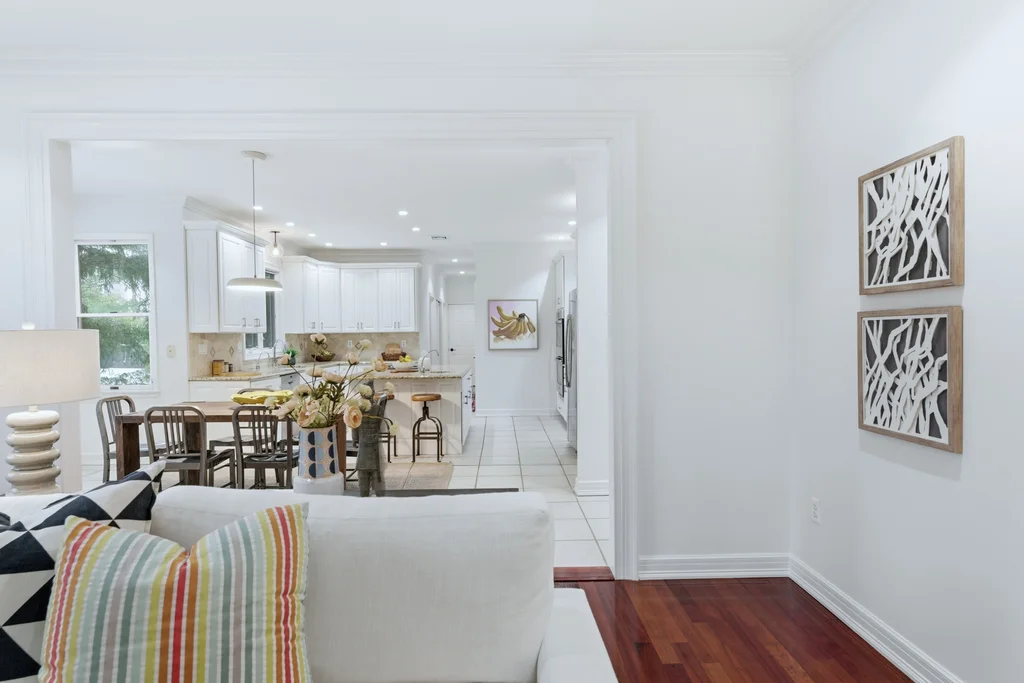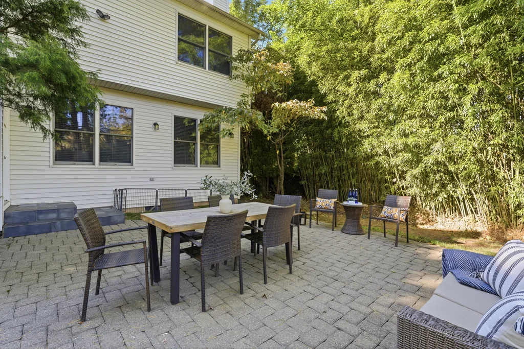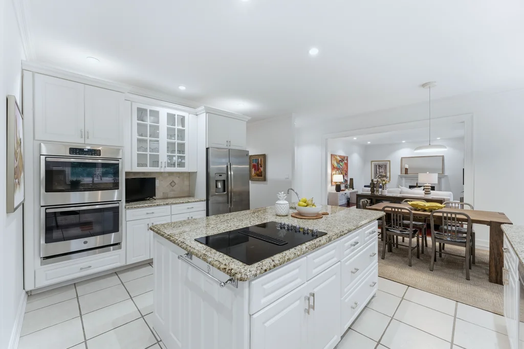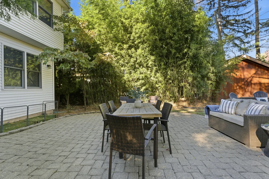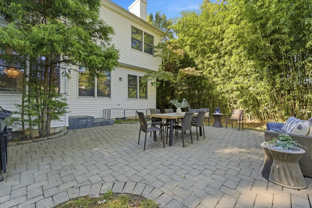 The main level was designed for connection and comfort. An oversized dining room flows seamlessly into the modern kitchen and sun drenched family room, all framed by large windows overlooking the flat, private backyard and elegant bluestone patio. Whether hosting holidays, gathering with friends, or enjoying a quiet night at home, the flow is natural, open, and welcoming.
